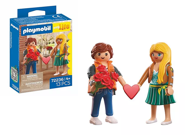 PLAYMOBIL - MyLife Valentines Day привносит в игровой мир повседневные эмоциональные ситуации. Две фигурки представляют собой любящую пару и украшены аксессуарами - букет роз и подвеска в виде сердца.