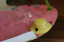 Шляпка - плотная резина, с прорезями для ушек. На обложке книжки показано, что ее носит папа, так что так и сделаем. Теперь он похож на садовода-огородника: