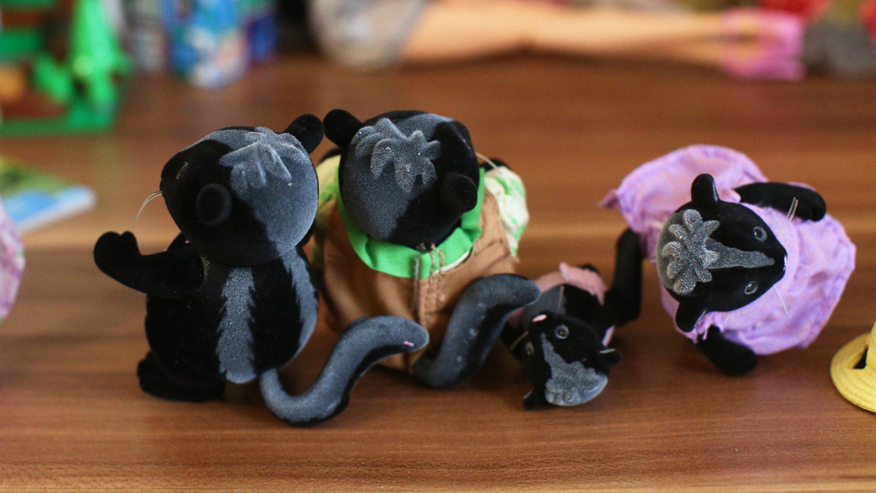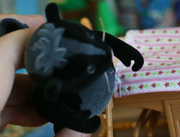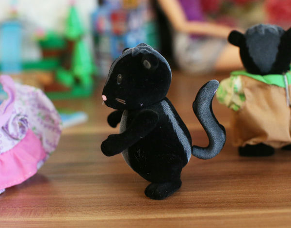 Все фигурки - флокированные, черные-черные, очень приятны на ощупь, у них подвижные руки, ноги и голова. В общем-то, все как у Sylvanian Families, но только Вудзис гораздо более упитанные, ножки у них короче, а ручки - хватательные, могут держать разные предметы.