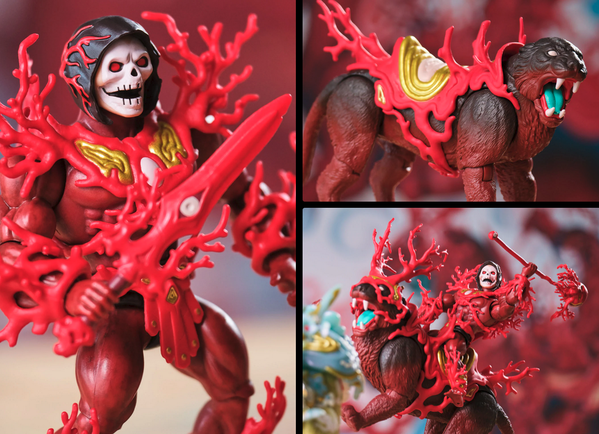 Безжалостный злодей, которого вы так любите ненавидеть, Скелетор, также получил свой собственный креативный дизайн, как и его свирепый скакун Пантор. Его темно-красный цвет отражает силу его ярости и жажды крови.