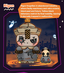 Ригон забыт в заброшенном промышленном месте, где неисправное оборудование сочетает прошлое и будущее. Желто-черные талисманы ограничивают его мобильность, оставляя его навечно в ловушке неисправностей.