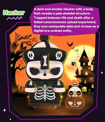 Темный и зловещий хакер с телом, напоминающим бледный скелет. Оказавшись между жизнью и смертью после неудачного эксперимента по загрузке сознания, они теперь манипулируют данными и вирусами, превратившись в нежить цифровой эры.