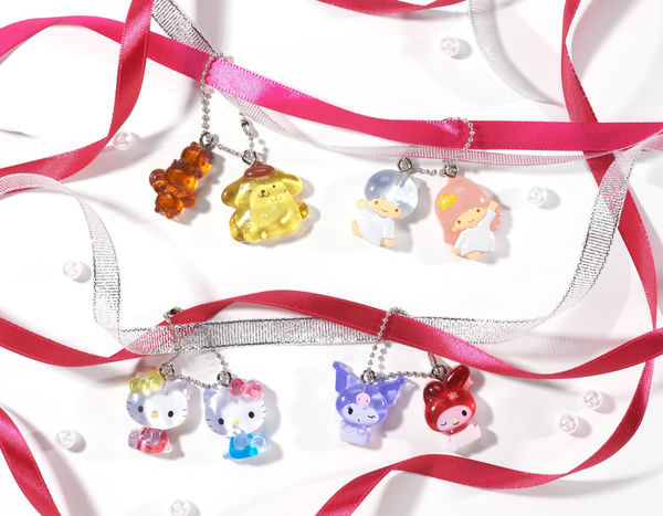 В линейку входят четыре вида брелоков: Hello Kitty x Hello Mimmy, My Melody x Kuromi, Pompompurin x Team Purin, а также Little Twin Stars.
