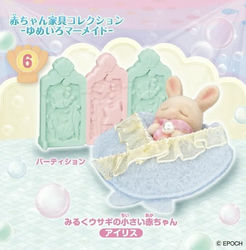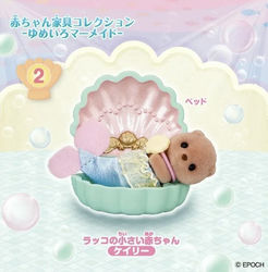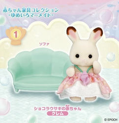В серии 6 фигурок: четыре малыша и два микро-малыша. Шоколадный кролик с бирюзовым диваном. Микро выдра в костюме русалки, с ракушкой. Хаски и табуретка в виде ракушки. Котенок Латте с тумбочкой. Тюлень в костюме русалки и диванчик-софа. Спящий молочный кролик с ширмой и мягкая кроватка-рыбка.