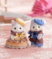 Семейная выставка Sylvanian, посвященная 40-летию компании. Пара фигурок в роскошных платьях - Шоколадный кролик и Молочный кролик. Это парный комплект, состоящий из шоколадной крольчихи, одетой в роскошное платье, и красивой крольчихи Ребекки