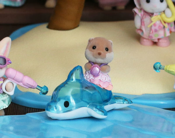 Этот симпатичный набор - новинка 2024 года, и в него входит сразу три фигурки с аксессуарами для отдыха на пляже, у воды. Среди аксессуаров примечателен дельфин - надувная игрушка