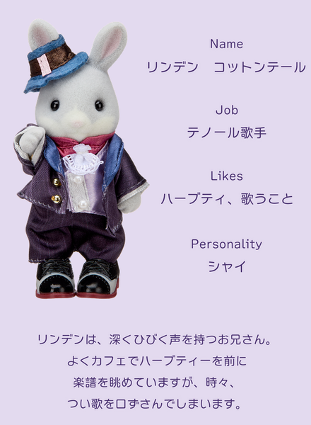 старшим братом из семьи Хлопковых кроликов, его зовут Линден. Вы можете насладиться стильным сочетанием официальной обуви, шляп, пиджаков и т. д. Стильная одежда, сумки, обувь и другие аксессуары - этот набор порадует поклонников.