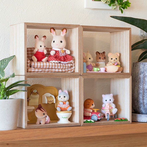 Очень понравились эти официальные фото с идеей создания небольшого (и большого тоже можно!) дисплея с фигурками и аксессуарами Sylvanian Families. Делается очень просто, а выглядит просто отлично!