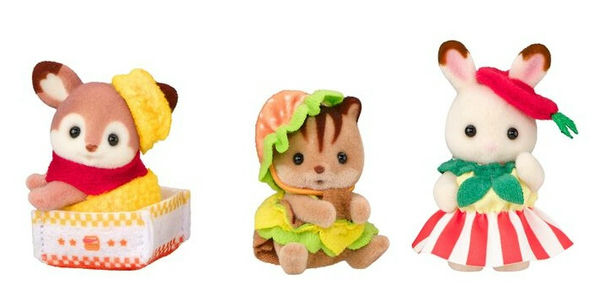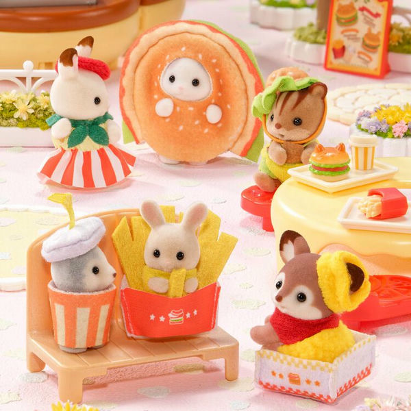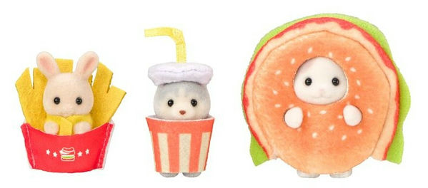 К 35-летию бренда уже выходила серия малышей в подобных костюмах, также были разные выпуски фигурок в подобной тематике, так что новинка может дополнить компанию (кстати, картошка фри тоже уже была). Вообще, коллекция на тематику фастфуда в Sylvanian Families уже довольно обширная: машинка-гамбургер, тележки с попкорном и прочее.