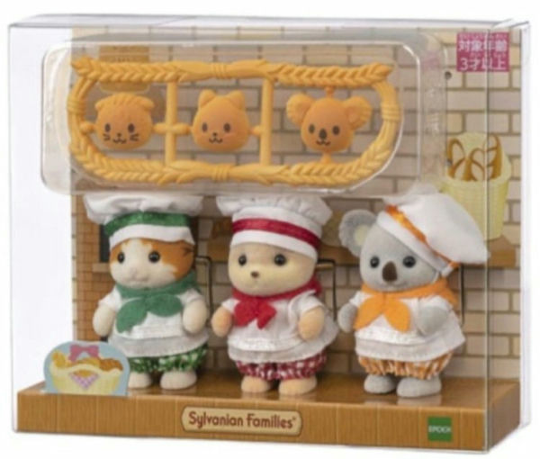 В Японии в начале весны 2023 года вышли малыши пекари (набор для японского рынка). И у них даже булочки в форме котика, собачки и коалы! Костюмчики малышей - белые с цветными штанишками, с белыми колпаками (одинаковые, но с отделкой разных цветов - зеленый, красный и апельсиново-желтый).