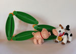 Животных в ассортименте ОЧЕНЬ много - можно собрать и ферму, и африканскую компанию, что больше нравится. Мы собирали маленькую ферму, поэтому теперь у нас есть кошка, собачка, поросёнок с коровкой. Поросёнок с коровкой продавались в наборе с забором-изгородью (это тоже было причиной, почему заказывала именно набор, а не корову и поросёнка по отдельности: забор - очень нужная вещь в хозяйстве).