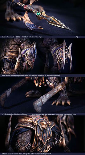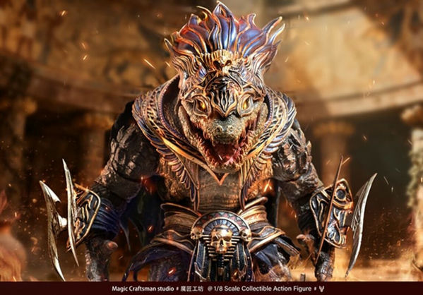 Новая на 2025/2026 год фигурка из серии Magic Craftsman Studio Temple of Chaos - Крокодил Собек, Колосс пустыни в масштабе 1/8. Это устрашающее существо-крокодил представлено в гуманоидной форме, его тело покрыто слоем впечатляющей брони, а также он идет с целым арсеналом оружия, способного сразить любого, кто осмелится бросить ему вызов.