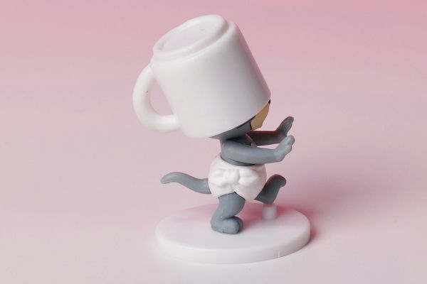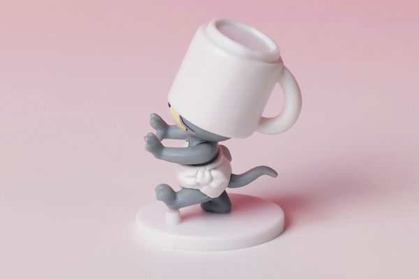 Еще одна минифигурка, воссоздающая комичную сцену, типичную для "Тома и Джерри", - это "Таффи с кофейной чашкой на голове". По какой-то причине у него на голове кофейная чашка, и он выглядит так, будто спотыкается, потому что не видит, куда идет.