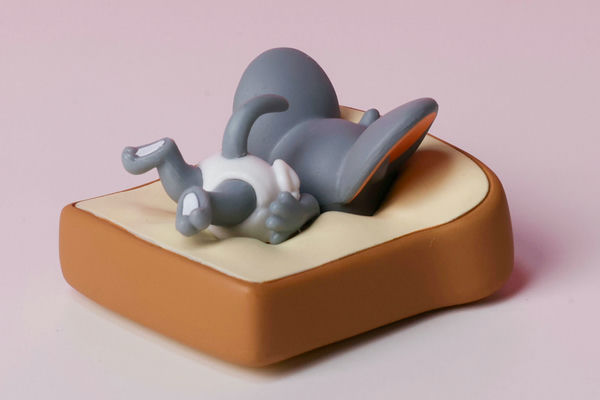 Минифигурка "Таффи, ныряющий в ломтик хлеба". Главная особенность этого блюда в том, что на самом деле это ломтик хлеба, а не подстилка. Особенно хорошо видно, как тело и лицо мышонка утопают в хлебе, если смотреть прямо сверху. Сам хлеб обработан таким образом, чтобы передать его цвет и мягкую, тягучую текстуру.