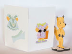 Состав: фигурка "Лисичка", или "Заяц", подставка, 6 костюмов, головные уборы. И столько же, сколько костюмов, заготовок для раскрашивания!