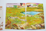 20 ламинированных плотных страниц с ОЧЕНЬ!! красивыми рисунками, плюс прилагаются листы с наклейками (выпуклыми, тоже очень красивыми) - дети могут расположить животных на листах книжки так, как им нравится. Можно изучать, кто где живёт. В книжке 7 разворотов с разными пейзажами.