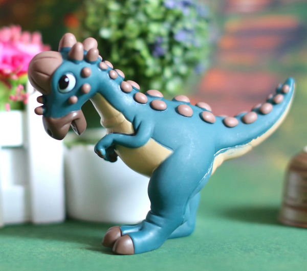 Фигурка сине-зелёного цвета, шипы (наросты) бежевого цвета, ногти и клюв — коричневого, низ фигурки — бледно-жёлтого.
