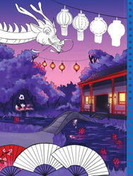Обычно на китайских костюмах можно увидеть красивые узоры. Это могут быть иероглифы, драконы, языки пламени или цветы. Пофантазируй, как ещё можно их украсить, для этого в журнале есть рисунок нарядов для раскрашивания.