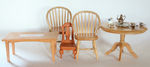 Обеденный стол и два стула, дуб, 1:12, Art of Mini. Стол круглый, на ножке, и отличные деревянные стулья.