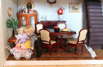 Как оказалось, эта коляска - не коляска для малыша кукольного дома, а игрушечная коляска для куклы из кукольного дома. Фарфоровым малышам масштаба 1:12 она маловата, зато игрушкам из детской комнаты кукольных домов масштаба 1:12 подходит идеально! Её могут катать