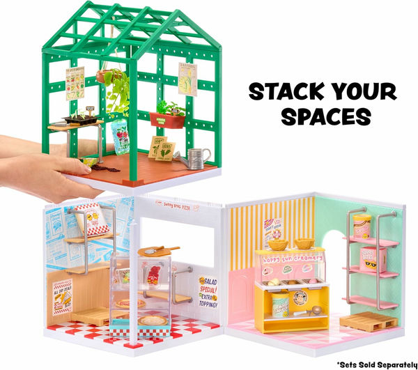 Вы также можете приобрести другие игровые наборы MGA Miniverse Make It Mini new Spaces, например, спа-салон и зоомагазин. Комнаты стыкуются друг с другом, так что можно собрать свой собственный уникальный дом (мини-городок):