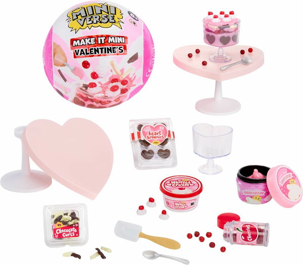 Знакомьтесь с коллекцией Miniverse Make It Mini Valentine от MGA, представлена третья серия, в которой выходит 4 новых праздничных мини-подарка: сюрприз сердце, букет из леденцовых сердечек, вишневый шоколадный трайфл и ультраредкое обручальное кольцо!