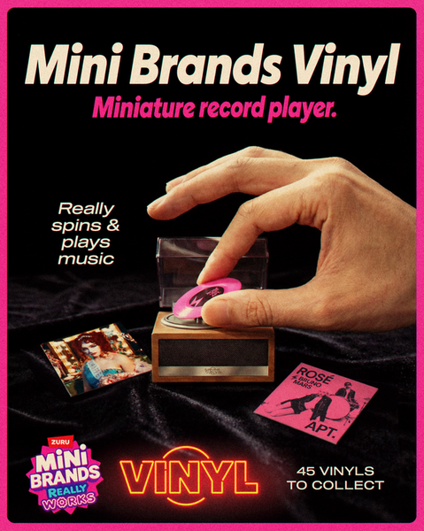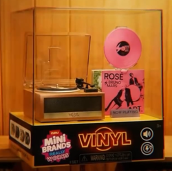 Mini Brands Really Works Vinyl знаменует официальное появление мини-брендов на рынке лицензионной музыки. Ассортимент включает в себя два артикула, предназначенных для коллекционирования и повторных покупок: один из них предлагает фирменную распаковку вслепую с пятью предметами (четырьмя миниатюрными виниловыми пластинками-сюрпризами и одним аксессуаром) в капсуле, а другой представлен в виде игрового набора с работающим перезаряжаемым мини-проигрывателем.
