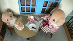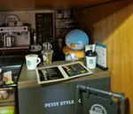 Здесь работают трое пингвинчиков. Все они - студенты по обмену, друзья коалы Кои, и работают в кафе в свободное от учебы время. Девочка сегодня за кассой.
