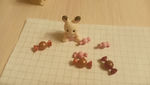 Диана, да, кошка Джорджина пока в отпуск уехала)) отдыхает в какой -то коробке. Заранее извиняюсь за ее отсутствие. Конечно, идеально было поискать, но я беру с полки подходящие фигурки и не мучаюсь, не трачу время на поиски. Мне нужна была фигурка, чтобы в лапки вставлялись ложечки. Это олень Бакли, лисичка, мишка мармеладная и шоколадные кролики. На полке стоит мама Марии и вот, лисичка. Поэтому ее наняла на работу в новом желатерии.