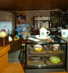 Разместилось оно в полочке под домиком коал. ☺️ Я заказала прозрачные пластиковые листы, потом сделаю из них крышку-шторку от пыли. Как вы можете увидеть, кафе прекрасно совместилось с кафе-мороженым от Koala Diary - думаю, у нас произойдет слияние двух франшиз 😉 под маркой Petit Style Coffee, и я дополню мебель от кафе-мороженого наклейками в цветах кафе Re-Ment.