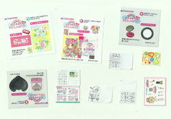 С каждым набором идёт красочный буклет. В Японии к наборам прилагается также и конфета, были и серии с яблочными жвачками (если покупать у нас - наверное нет, сложности таможни, по крайней мере в Америку наборы попадают без конфет).