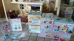 ?!Также есть серия Puchi Sample (Puchi - мини по-японски). Это линейка миниатюры в масштабе 1:6 - на фото слева. Идея серии - витрины с выставленными товарами. Это линейка для взрослых коллекционеров. Подходит для кукол типа Blythe или Barbie. Как правило, каждая серия Puchi Sample - это 5, 6, 8, 9, 10 или 12 образцов, упакованных в коробку-дисплей для продажи. Каждый набор в коробке упакован в пластик. Позже Ре-мент стали также паковать некоторые наборы в индивидуальные упаковки.