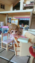 Потрясающая гармония вместе с этим домиком-рестораном. Не удивлюсь ,если создатели этого Re-ment'а где-то черпали вдохновение от этого домика. На снимке , где Re-ment ещё в упаковке. Видно ,я так понимаю это фон от этого Re-ment'а . Он очень похож на этот ресторан. Они были предназначены друг для друга.