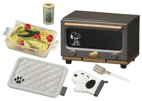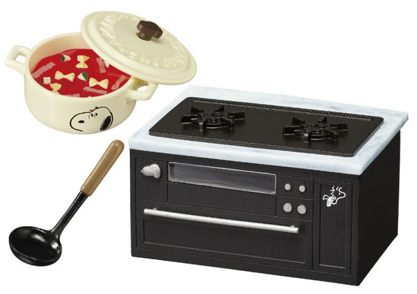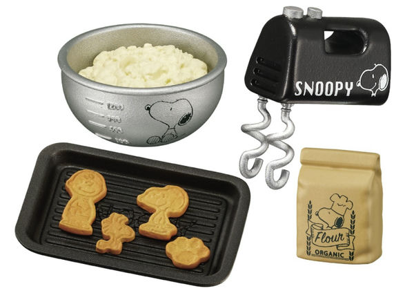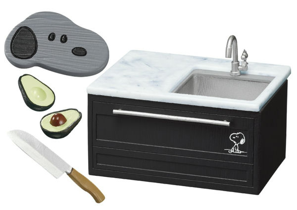 В коллекции 8 типов наборов. Соберите свою стильную кухню в стиле Снупи! В наборы входят кухонные приборы, а также различные продукты питания. Все вместе они образуют красивый кухонный уголок, полностью обставленный.