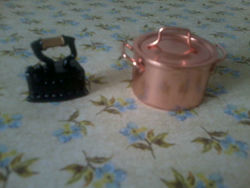 крошечный утюг и медная кастрюлька (производитель Marianne Hobby)
