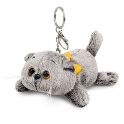 Милый брелок Басика необычной формы – котик лежит на животике.