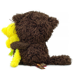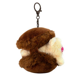 трогательно держит в лапках малыша Клубнику, сшитого из эко меха цвета