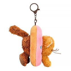 Кот брелок Эспрессо. Брелок сшит из тактильно приятного эко меха цвета горького шоколада. На пяточках и внутри ушек вшит темно коричневый софт. Один подвес – это браслет с хештегом «СУПЕРсила». Другой подвес – кусочек шоколадки с двойным розовым сердечком.