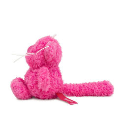 трогательно держит в лапках малыша Вишню, сшитого из ярко-розового эко