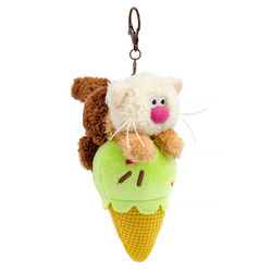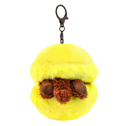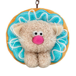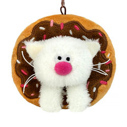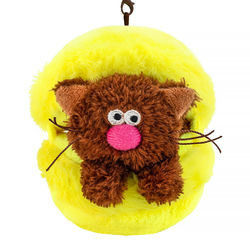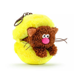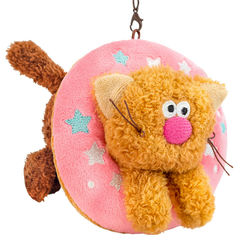 Забавный брелок в виде милого котёнка Сливки из тактильно приятного эко меха сливочного цвета. Котёнок лежит между половинками пирожного макаронс. Шоколадное пирожное сшито из софта и короткого меха цвета горького шоколада.Брелок Эспрессо «Десерт»