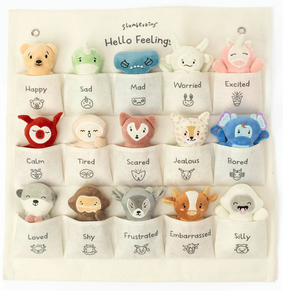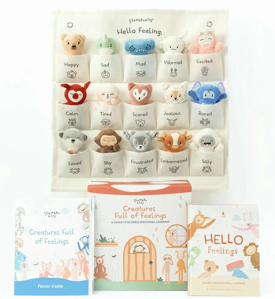 Дети многому учатся у персонажей персонажей линейки мягких игрушек Slumberkins: эмоциональной регуляции и разрешению конфликтов от Hammerhead, безопасности и жизнестойкости от Otter. А набор инструментов для родителей "Существа, полные чувств" - это новый ресурс для изучения сильных чувств. Разработанный терапевтами и педагогами, этот инструмент эмоционального развития помогает родителям научить детей называть и замечать свои чувства, практиковать навыки успокоения и преодоления трудностей, а также лучше понимать свои потребности и то, как о них просить.