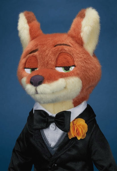 Ник Уайлд - один из главных героев последнего диснеевского фильма "Зверополис 2". Он объединяется с Джуди, главной героиней, чтобы бороться с преступлениями в качестве офицера полиции. Плюшевая игрушка выполнена в костюме-смокинге, которые надевают Джуди и Ник, когда они появляются на вечеринке.