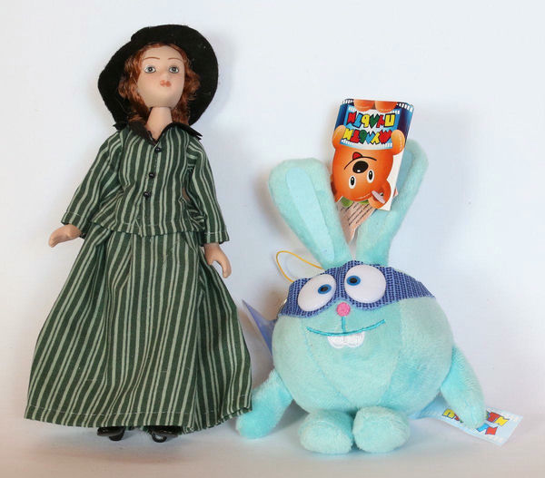 Крош рядом с 18-см куклой Дамой Эпохи. Здесь ещё с этикетками.