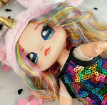Сначала вы найдете не куклу, а плюшевое животное, круглое, как помпон, которое на самом деле - сумочка на молнии. Раскройте сумочку, увидите внутри упаковку, в которой уже скрывается кукла.