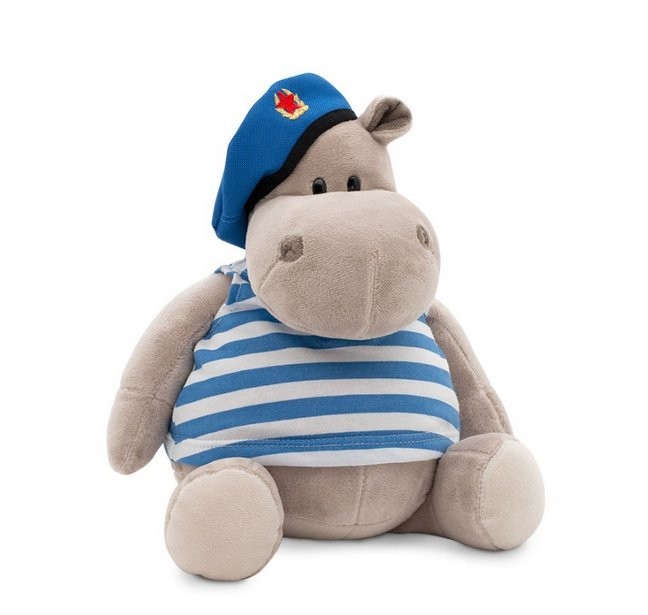 Бегемот Военный (старый). Бегемот в шапочке с прорезями для ушек, а на футболке есть лейбл