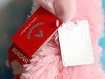 А ещё у этой обезьянки большие... уши! Да, именно уши, которые пришиты к бокам головы, торчат из шёрстки, они такого же цвета, что и шерсть (бледно-розового), но материал у них другой (материал - плюш), всё-таки это "кожа", и меха там не должно быть.