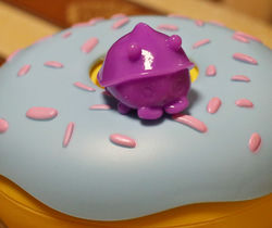 Более позднее дополнение (осень 2020): лучше поздно, чем никогда. Мы обнаружили, что у большого пончика есть еще один сюрприз, который мы не открыли. Итак, открываем, выламывая центральную часть, там прячется довольно крупная "желейная" фигурка: