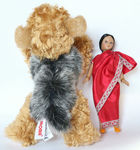 Размер собачки - около 23-25 см. На фото рядом с 18-см куклой.