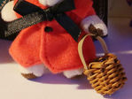 У каждого из мишек есть аксессуары, которые и полагается иметь его герою: у Мерлина - волшебная палочка с шаром, у Красной шапочки - плетёная корзиночка (не пластик! - действительно настоящая корзинка), у Робин Губа - лук со стрелами.