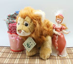 Лев, с этикеткой, на фото рядом с 18-см куклой Дамой Эпохи.